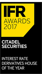 Citadel Securities was named Interest Rate Derivatives House of the Year. IFR applauded Citadel Securities for “stepping up with an ambitious plan to redefine the voice-traded world of customized swaps while maintaining its commitment to firm, tight and consistent pricing.” The article also quoted several clients, who praised the firm for being proactive in servicing client needs and offering an exceptional client service experience. Read the full story here.The IFR Awards honor excellence in the capital markets and have traditionally recognized the most successful investment banking firms. IFR’s editorial team determines the winners following a process that involves a review of written submissions, verbal pitches and client references.