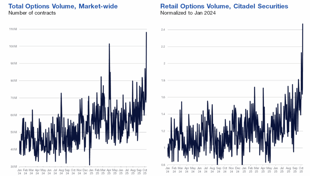 Source: Citadel Securities, as of October 15th, 2025. Figures are for illustrative purposes only. Past performance figures do not guarantee future results.5. Retail Option acceleration in Q4