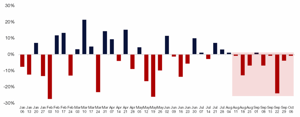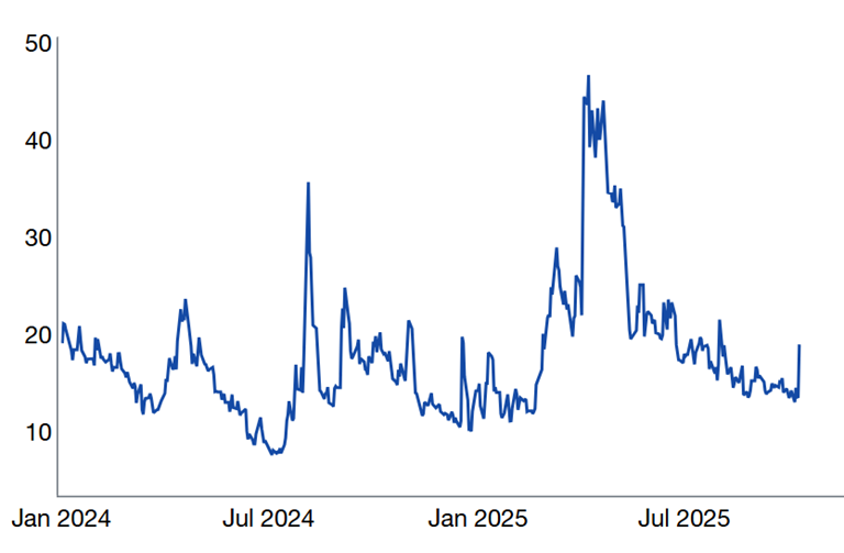 Source: Bloomberg as compiled by Citadel Securities, as of October 15th, 2025. Figures are for illustrative purposes only. Past performance figures do not guarantee future results.