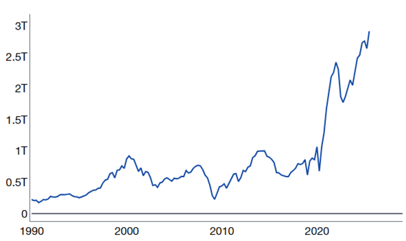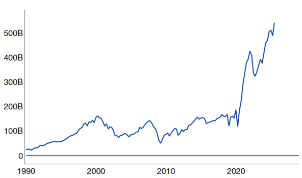 Source: Financial Accounts of the United States Z.1, Federal Reserve Board, as compiled by Citadel Securities, as of October 15th, 2025. Figures are for illustrative purposes only. Past performance figures do not guarantee future results.