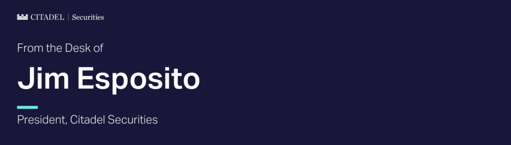 We’re excited to announce the launch of Citadel Securities’ High Touch Equities business – built the Citadel Securities way: through technology, partnership, and innovation. We’ve recently welcomed Elan Luger to lead this initiative and are assembling a world-class team around him. Elan and I will soon be meeting with many of you to share how we’re designing this business to deliver the execution quality, transparency, and insight you expect from Citadel Securities.
