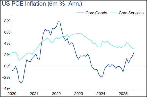 WHAT DOES IT MEAN FOR THE FED & MARKETS? Regular readers will know that my view has been that rate cuts are not warranted given the state of the US economy…with stock markets making new highs, FCI continuing to ease and inflation that remains meaningfully above-target (and likely to rise). My core view has been that growth, and the labour market have been moderating from strong levels, but we are not going to see a recession anytime soon…but more importantly, the forward outlook for growth has been on a positive trajectory since May. I continue to hold this view. If it were up to only Chair Powell, I doubt he would cut rates…but given the ongoing pressure from President Trump to lower policy rates and the recent labour market data, it’s now more likely that the FOMC will take the opportunity to do a 25bp insurance cut in September’s meeting. I still see this as a 60-40 likelihood and doubt they would consider a 50bp move like last year – at that time, the u/e rate was rising fast and sequential inflation was coming in lower than their forecast – categorically not the backdrop we currently have with Core Goods inflation rising worryingly and Core Services remaining stubbornly high (chart below)…with tariff effects yet to be fully felt. The next two CPI prints (starting Tue) will be key in determining the Fed’s level of comfort for any cuts. For asset markets, this leaves me bullish equities – a view I’ve held since early May. Indeed, our industry leading equities franchise continues to see retail buying in large volumes with 14 out of the last 16 weeks seeing net purchases, whilst institutional sentiment remains bearish (though we note some signs of change with a sharp increase in call option activity last week). My colleague Scott Rubner notes that this is the sixth longest bullish streak since 2020…I don’t see any imminent reason for that streak to end. In 10y rates, the bullish-but-still-rangebound move I had predicted is set to continue with no meaningful catalyst to break out of the 4-4.60% range, which will only add weight to the stock market rally. So, what’s the risk? Inflation. As I’ve been arguing since the beginning of the year, inflation remains a serious issue for the Fed…now even more so with this Administration’s policies = tariffs, fiscal expansion, reduced immigration, and tilting the Fed in a more dovish direction.