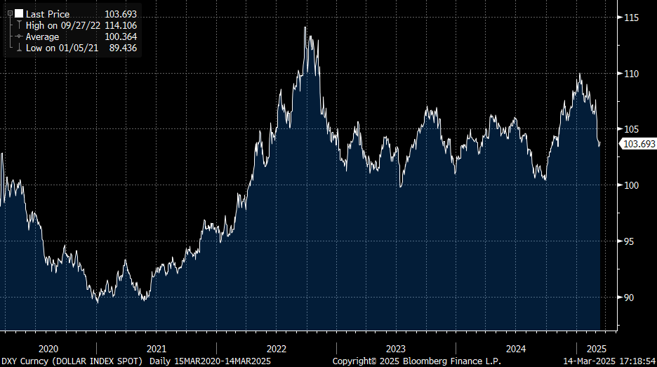 PRESIDENT TRUMP AND SECRETARY BESSENT…have made it clear this week that the focus is squarely on getting their trade agenda implemented and not on the stock market. Risk assets have taken this at face value in recent weeks, continuing to sell-off with NDX -11% and SPX -8% from the peak. The technical picture has indeed been challenging with momentum and factor unwinds, as well as CTA selling all playing a role. Though difficult to say, it feels like we are in the latter innings of this move and on Friday the market started to stabilize for the first time in a while. However, for a substantive move higher in risk assets, we likely need a positive tier 1 macro catalyst…assuming the back-and-forth on tariffs continues. It’s fashionable these days to say there’s no “Trump Put” on equities…but make no mistake, this is real wealth destruction for US citizens (including for many of the folks surrounding the President)…and with a sizeable ongoing impact on American companies. My expectation would be that CEOs are voicing their concerns privately…so perhaps there may well be a ”Trump Put”…just further out-of-the-money than most expected. More concerningly, the implications of a strategy to eliminate the US trade deficit, including with allies, has profound implications for global asset prices over the medium-term. Most of the trade surplus from large foreign countries goes into US equities and bonds…THE global benchmark assets…a profitable relationship for both sides. If the trade war escalates, it’s easy to see a de-coupling of this multi-decade relationship…with a dramatic impact on stock prices and bond yields as countries reduce their exposure to US assets. It is tough to predict where we will land on the spectrum of outcomes for tariffs with so much uncertainty on the table…but we will find out more around the 2nd April deadline. All of this is the true price of “America First”…and why I continue to favour USD fx weakening.
