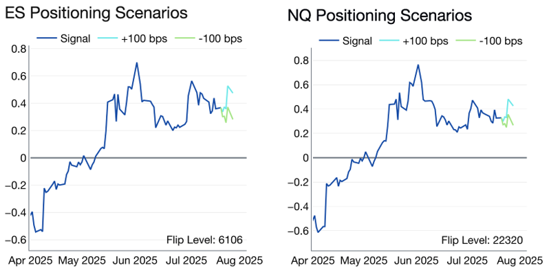 Source: Citadel Securities, as of 7/23/25. Figures are for illustrative purposes only. Past performance figures do not guarantee future results.20. CTA medium-term “flip” thresholds are materially below current spot and give equity futures a large buffer before hitting a trigger level. Citadel Securities’ global macro strategy team estimates the ES1 (SPX) flip level at 6106 vs. current levels of 6370.