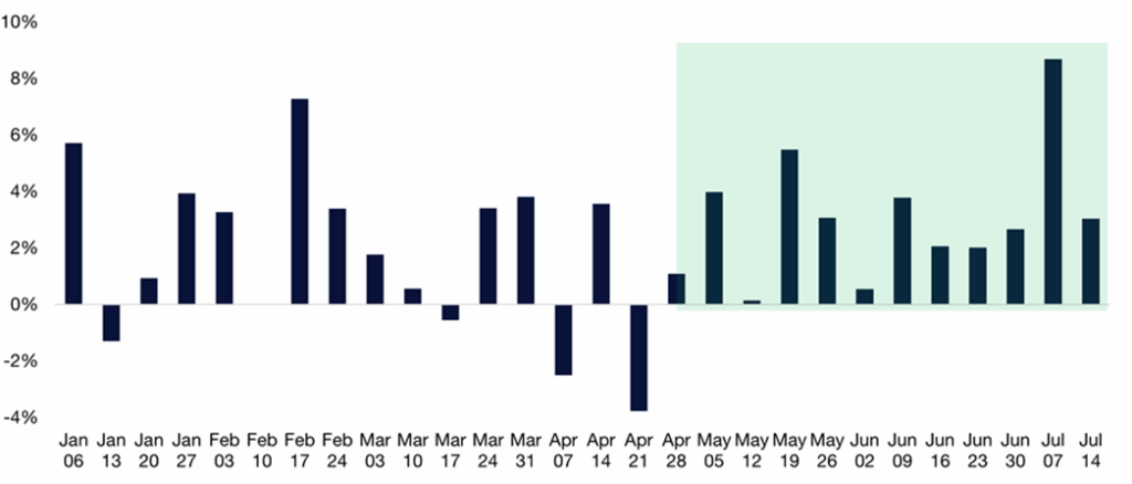Source: Source: Citadel Securities, Bloomberg, as of 7/23/25. Figures are for illustrative purposes only. Past performance figures do not guarantee future results.