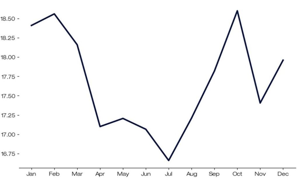 Since 1990, July typically represents an inflection point for the VIX, marking the lowest point of the year.