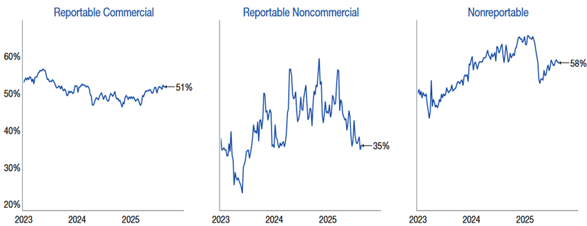 Source: Citadel Securities, as of September 2nd, 2025. Figures are for illustrative purposes only. Past performance figures do not guarantee future results.8. Citadel Securities Institutional Options clients are also bullish.