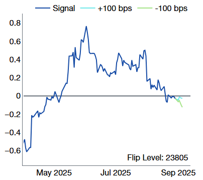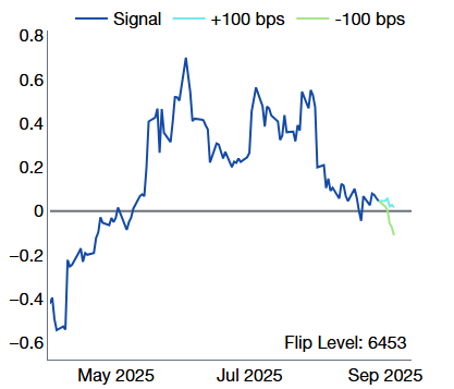 Source: Citadel Securities, as of September 2nd, 2025. Figures are for illustrative purposes only. Past performance figures do not guarantee future results.11. CTA thresholds: Flip levels are getting closer to current spot.