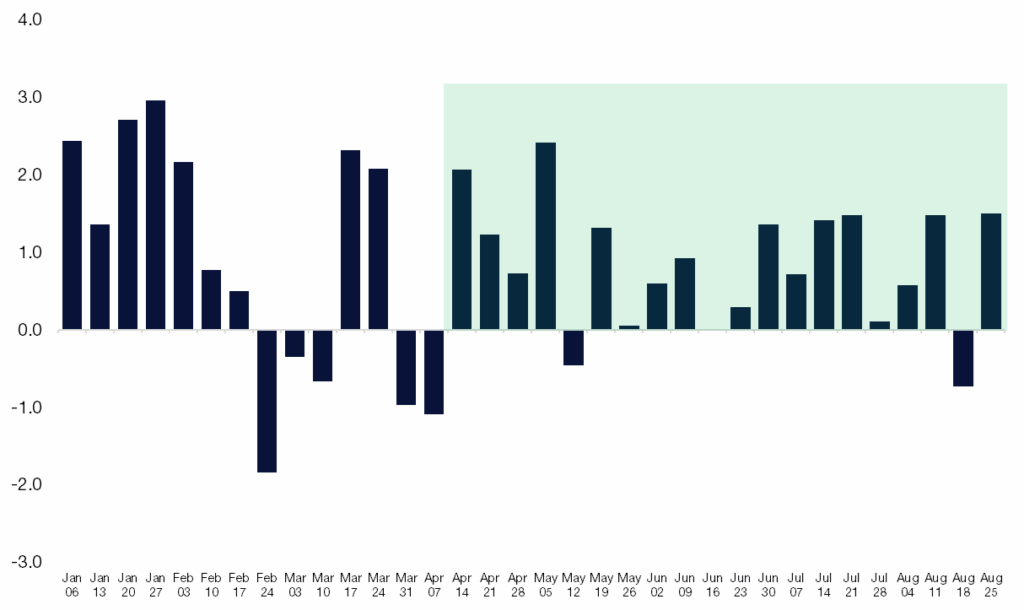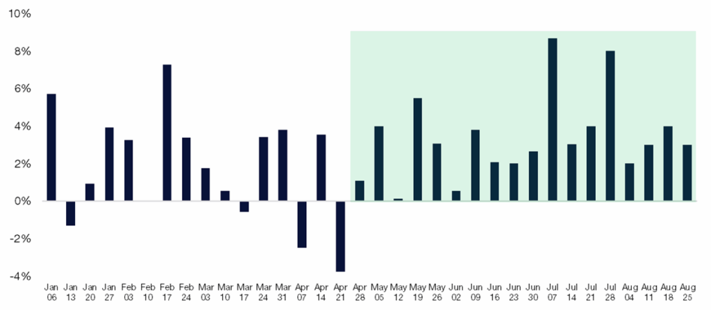 Source: Citadel Securities, as of September 2nd, 2025. Figures are for illustrative purposes only. Past performance figures do not guarantee future results.7. September slowdown before Q4 ramp: