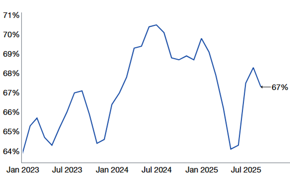 Source: Citadel Securities, as of September 16th, 2025. Figures are for illustrative purposes only. Past performance figures do not guarantee future results.16. Sentiment has declined, yet retail remains resilient