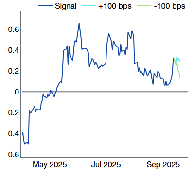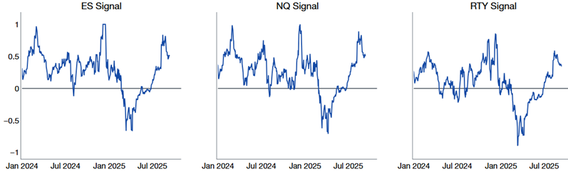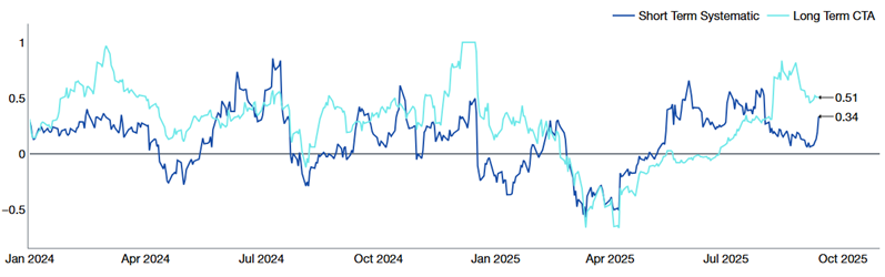 Source: Citadel Securities, as of September 16th, 2025. Figures are for illustrative purposes only. Past performance figures do not guarantee future results.12. CTA ES1: Short-term and long-term signals