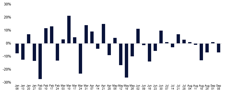 Source: Citadel Securities, as of September 16th, 2025. Figures are for illustrative purposes only. Past performance figures do not guarantee future results.9. Volatility: September Triple-Witch Option Expiration (September 19th)
