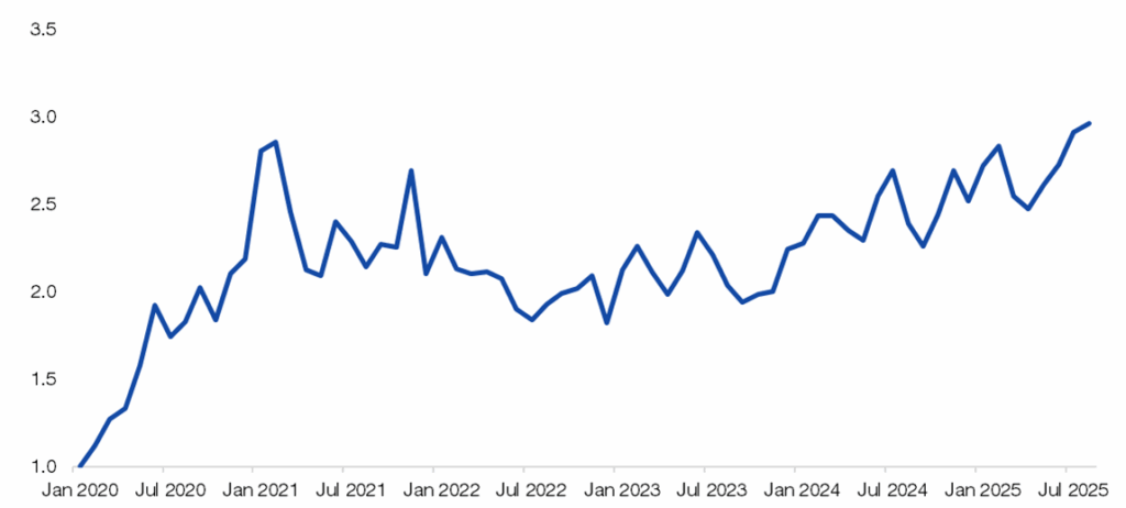 Source: Citadel Securities, as of September 16th, 2025. Figures are for illustrative purposes only. Past performance figures do not guarantee future results.2. Retail Trend: Citadel Securities’ Retail Equity clients have been structural buyers for 20 consecutive months of both net notional and shares.