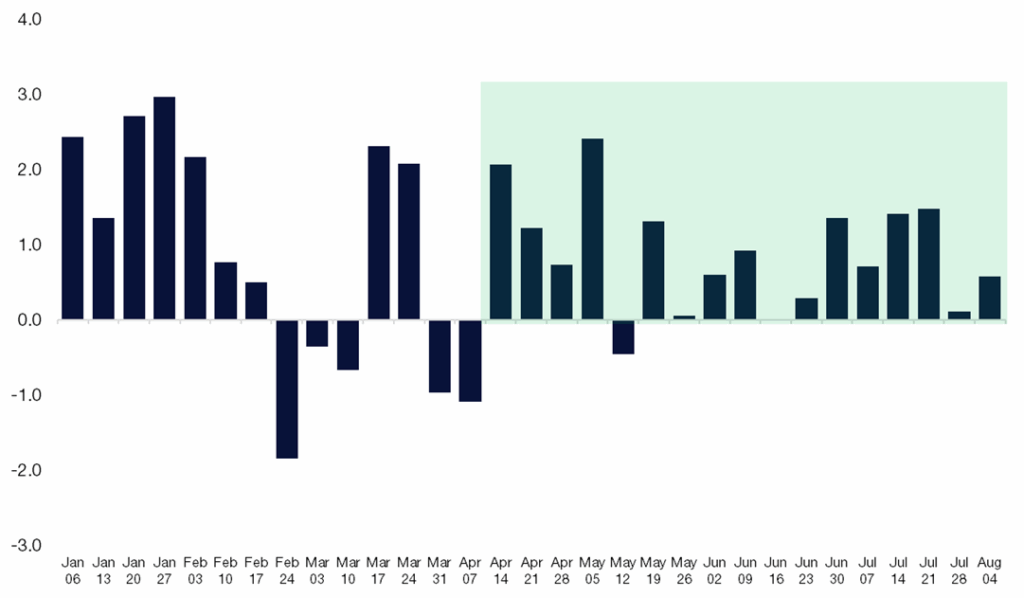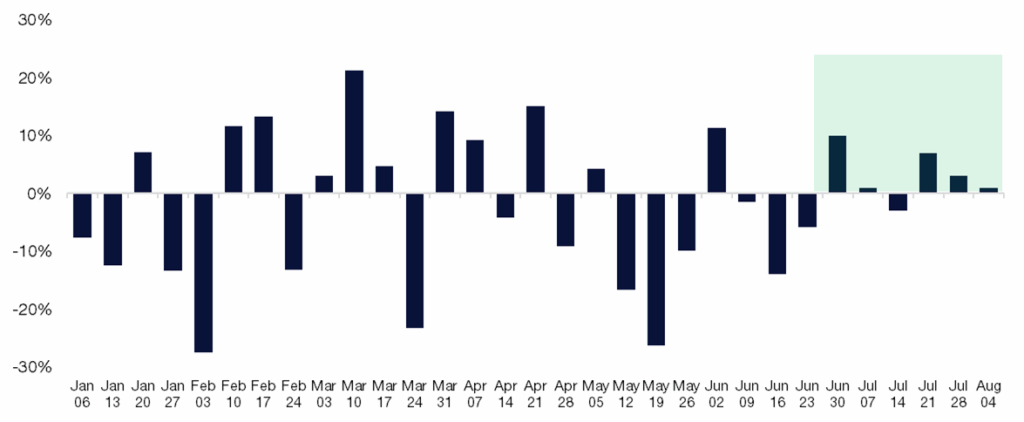 Source: Bloomberg as compiled by Citadel Securities, as of 8/12/25. Figures are for illustrative purposes only. Past performance figures do not guarantee future results.15. August Positivity Bias