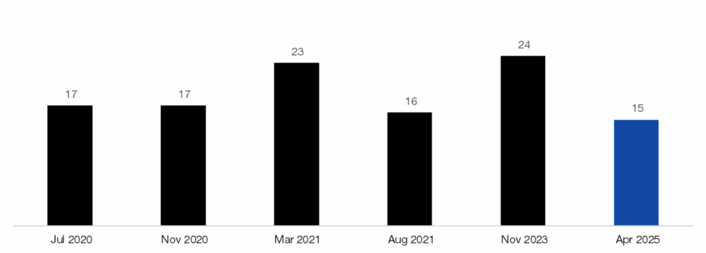 Source: Bloomberg as compiled by Citadel Securities, as of 8/12/25. Figures are for illustrative purposes only. Past performance figures do not guarantee future results.14. Q2 EPS Growth: +11.4% vs. 5% expected — strongest since Q2 2021