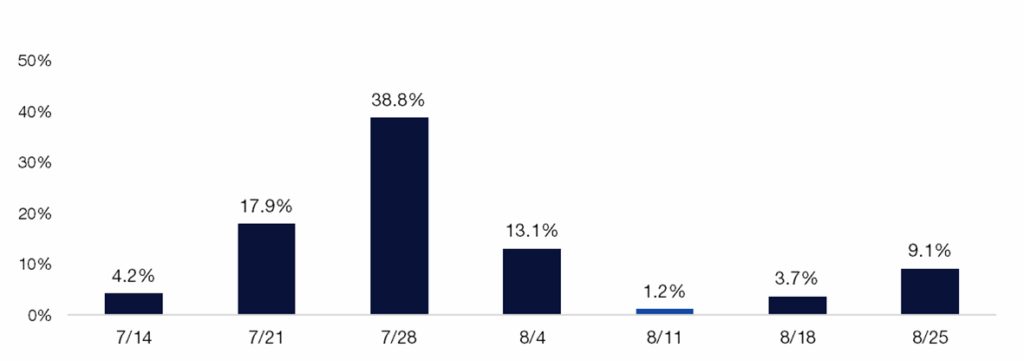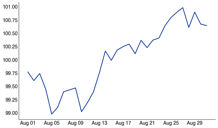 Source: Bloomberg as compiled by Citadel Securities, as of 8/5/25. Figures are for illustrative purposes only. Past performance figures do not guarantee future results.NDX August Daily Performance