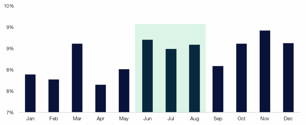 Source: Citadel Securities, as of 8/5/25. Figures are for illustrative purposes only. Past performance figures do not guarantee future results.7. Seasonal Drop Ahead?