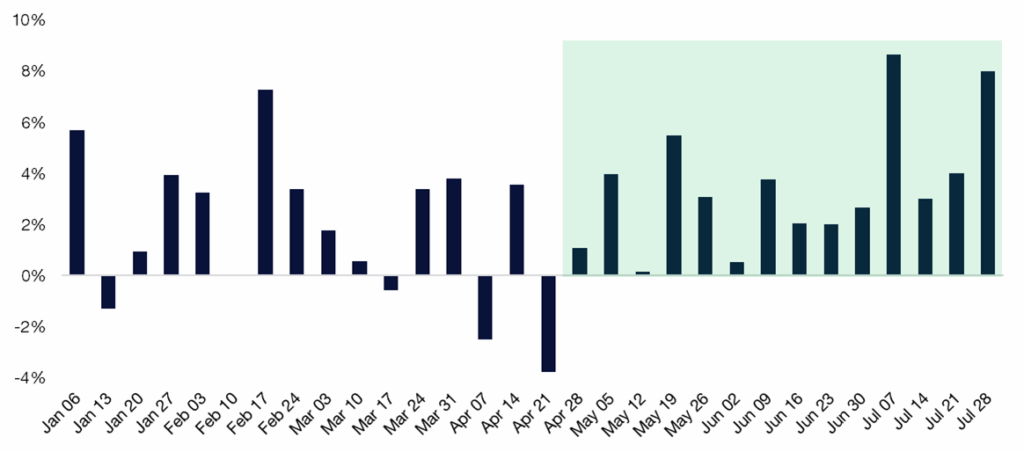 Source: Citadel Securities, as of 8/5/25. Figures are for illustrative purposes only. Past performance figures do not guarantee future results.Copyright © Citadel Enterprise Americas LLC or one of its affiliates. All rights reserved.