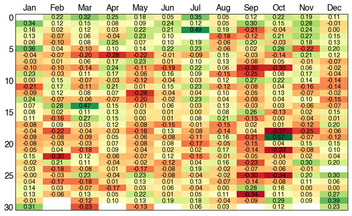 Source: Bloomberg as compiled by Citadel Securities, as of 8/12/25. Figures are for illustrative purposes only. Past performance figures do not guarantee future results.SPX 500 Daily Performance Quilt