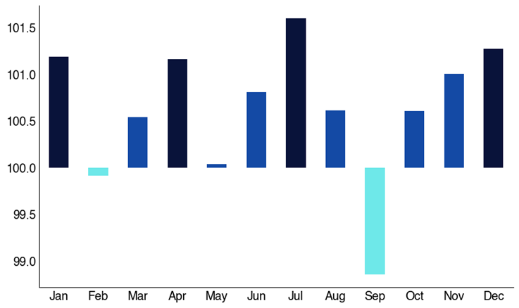 Source: ICI, as reported by Bloomberg and compiled by Citadel Securities, as of 8/12/25. Figures are for illustrative purposes only. Past performance figures do not guarantee future results.III. Seasonality Watch