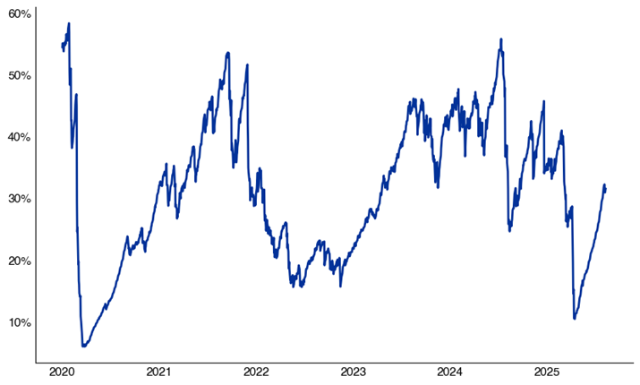 Source: AAII, as reported by Bloomberg and compiled by Citadel Securities, as of 8/12/25. Figures are for illustrative purposes only. Past performance figures do not guarantee future results.