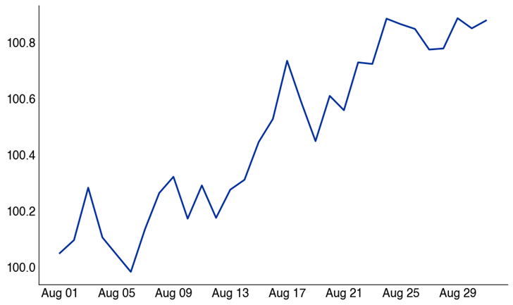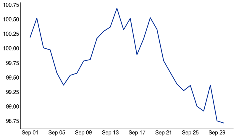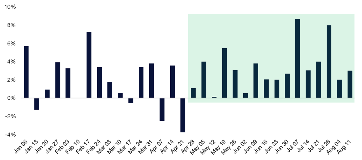 Source: Bloomberg as compiled by Citadel Securities, as of 8/19/25. Figures are for illustrative purposes only. Past performance figures do not guarantee future results.NDX September Monthly Performance