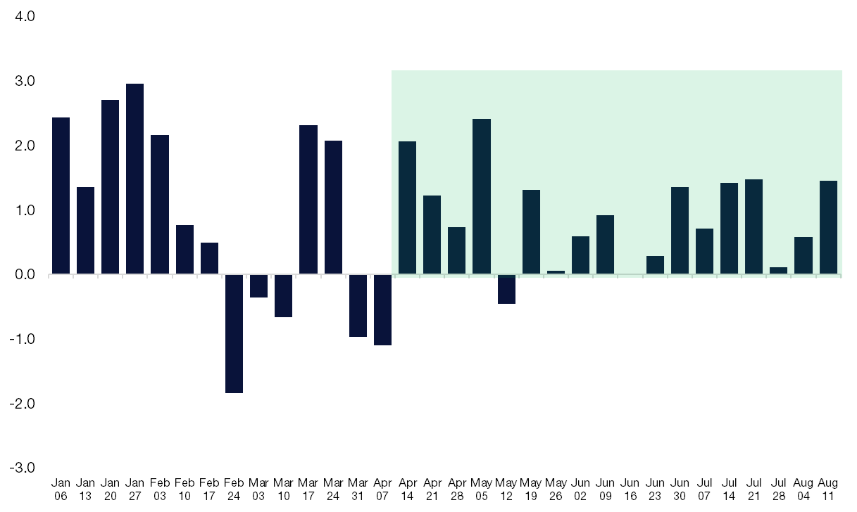 Source: Bloomberg as compiled by Citadel Securities, as of 8/12/25. Figures are for illustrative purposes only. Past performance figures do not guarantee future results.15. August Final Push
