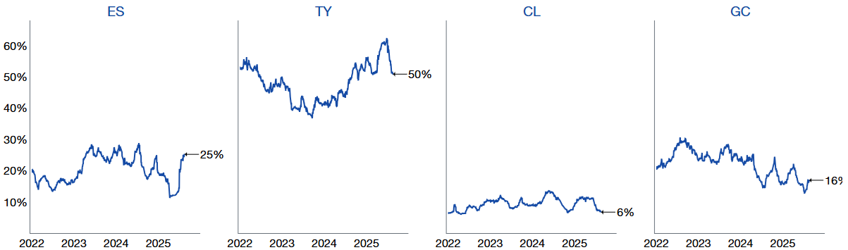 Source: Citadel Securities, as of 8/19/25. Figures are for illustrative purposes only. Past performance figures do not guarantee future results.8. Citadel Securities Institutional Options clients are also bullish.