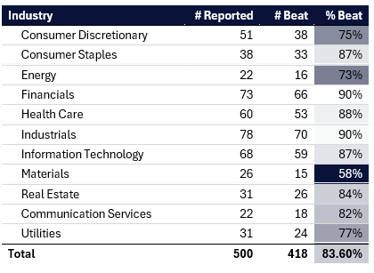 - According to Bloomberg, Q2 EPS beat rate of 83% exceeds the 10-year average of 74%.