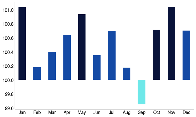 Citadel Securities’ Retail Options client volume typically wanes in September before rebounding into the final quarter of the calendar year. Activity picks back up in Q4, with November the strongest month of the year.