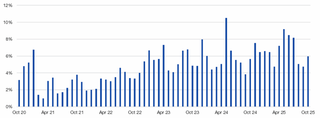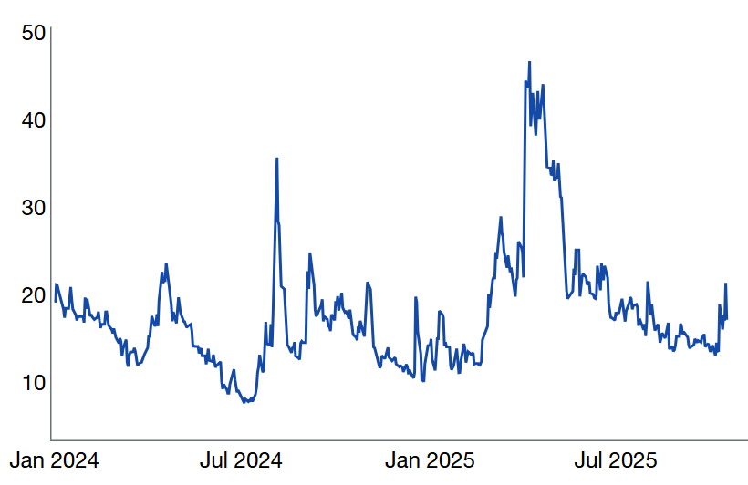 Source: Bloomberg as compiled by Citadel Securities, as of October 24th, 2025. Figures are for illustrative purposes only. Past performance figures do not guarantee future results.VIX Monthly Performance