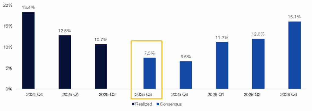 - Q3 setup: Bar is modestly higher; consensus +7.5% YoY