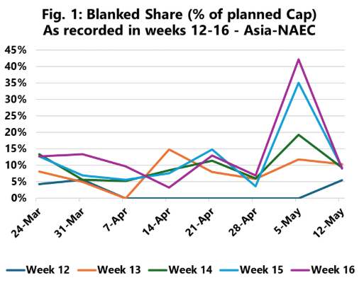 ENTERING INTO A TRADE WAR…with your largest trading partners (all at the same time) has profound implications for both the US and the global economy. Tariffs are a supply-side stagflationary shock…the re-shoring labour-intensive supply chains will come at the cost of higher value-add activities. In the medium-term, a less efficient allocation of capital and labour will lead to lower productivity, lower trend growth and higher inflation…for a given level of GDP growth. But even in the short-term, the supply shock from a shortage of goods is likely to be very substantial, perhaps even Covid-Esque. The impending impact is most clearly observable in US import bookings (chart above; Vizion)…following a surge in Q4’24, we have seen a sharp decline since Jan 2025. This likely represents shippers moving quickly to front-load shipments in anticipation of tariffs…followed by volumes collapsing as uncertainty hits and we’re closer to implementation. Indeed, when looking at The Port of Los Angeles data (above), we can see a 28% week-on-week decline in TEUs (twenty-foot equivalent unit) for the week of 27 Apr, compared to the week prior. Similarly, Sea Intelligence analyses blanked capacity (as a percentage of planned capacity) in Transpacific trade…which shows continued major spikes in blank sailings, going up to 42% in the most recent week (chart below). This is the real-time impact of the current policy landscape – business investment dries up and consumer confidence cracks. The recent strength in durable goods orders likely reflects pre-tariff front-loading…and whilst this can persist into some of the April data, its reasonable to expect a precipitous decline soon, mirroring the shipping data (and indeed weak consumer sentiment). Whilst a change in tone from President Trump may be helpful…and even assuming that there’s a tariff deal with China around the mid 50% mark (20% + 34% reciprocal)…we’re still looking at a minimum effective tariff rate for the US economy of ~17% (versus ~28% under current proposals)…and that’s with a conservative assumption on sectoral tariffs of 10%. This leaves YoY Core CPI at ~4.5% and Core PCE ~4.3% (the Fed’s preferred measure), according to Durham Abric, our inflation expert. Enough to make the Fed more than a little concerned. In my mind, the US administration has likely overplayed its hand and is now left in a position where they’re trying to negotiate trade deals with multiple countries…something that typically takes many months…within a 90-day pause, which itself was forced by market pressure. This is a far-from-ideal negotiating stance.