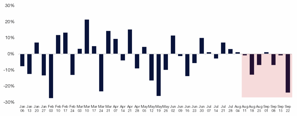Source: Bloomberg as compiled by Citadel Securities, as of September 29th, 2025. Figures are for illustrative purposes only. Past performance figures do not guarantee future results.NDX Monthly Performance by Day