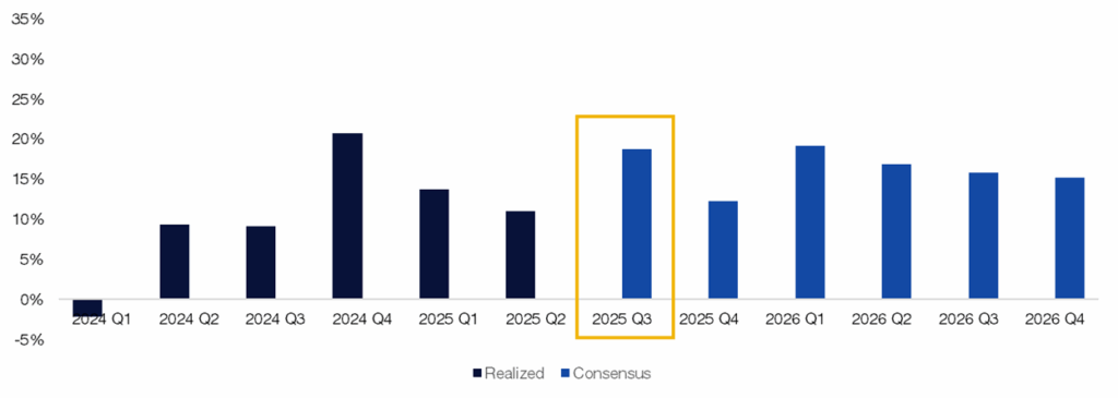 - Consensus forecasts: S&P 500 +18.7% YoY; Information Technology +30.0% YoY