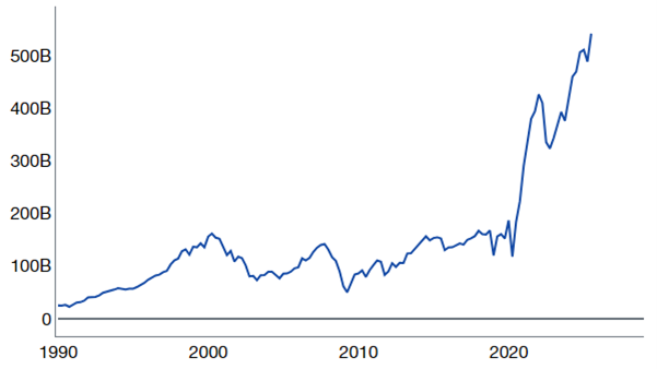 Source: Federal Reserve as compiled by Citadel Securities, as of September 29th, 2025. Figures are for illustrative purposes only. Past performance figures do not guarantee future results.