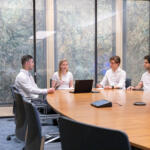 18/18Team members gather in a meeting room.