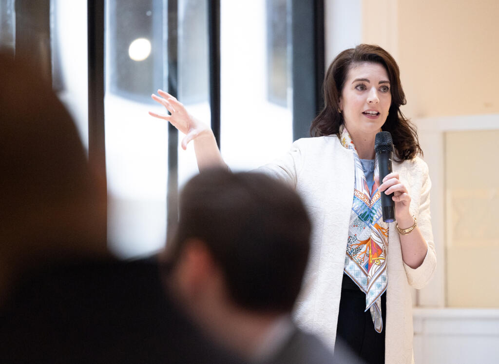 4/14Team members gather for a Women's History Month conversation, where women in leadership roles share how they grew their careers at the firm.